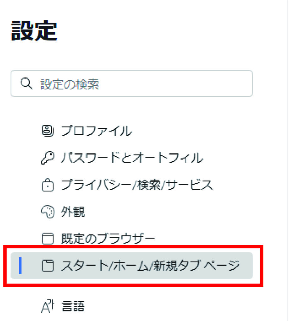 ③【スタート/ホーム/新規タブ ページ】をクリックします。