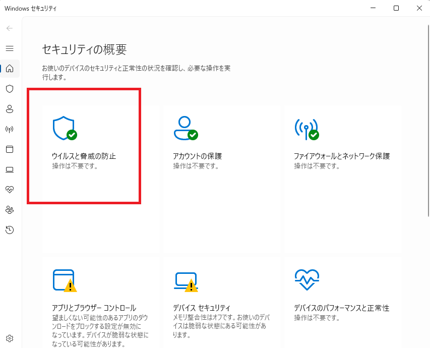「ウイルスと脅威の防止」をクリックしてください。