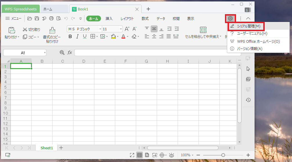 画面右側にある歯車マークの設定→シリアル管理をクリックします。